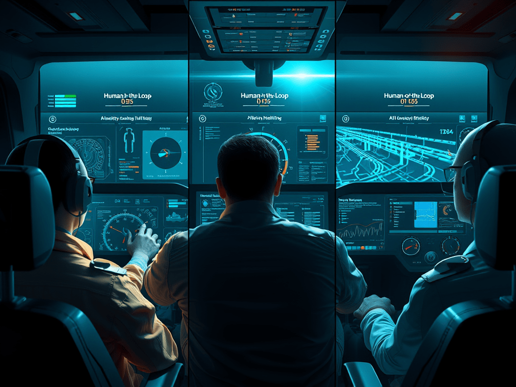 - Human‑on‑the‑loop (HOTL) The AI acts autonomously within boundaries; humans monitor and can intervene. Think “autopilot with pilot present.”